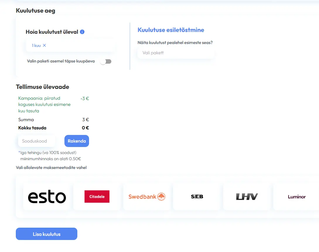 Loodud on maksesüsteem, kus klient saab tõsta oma kuulutuse nähtavust, makstes lisatasu.